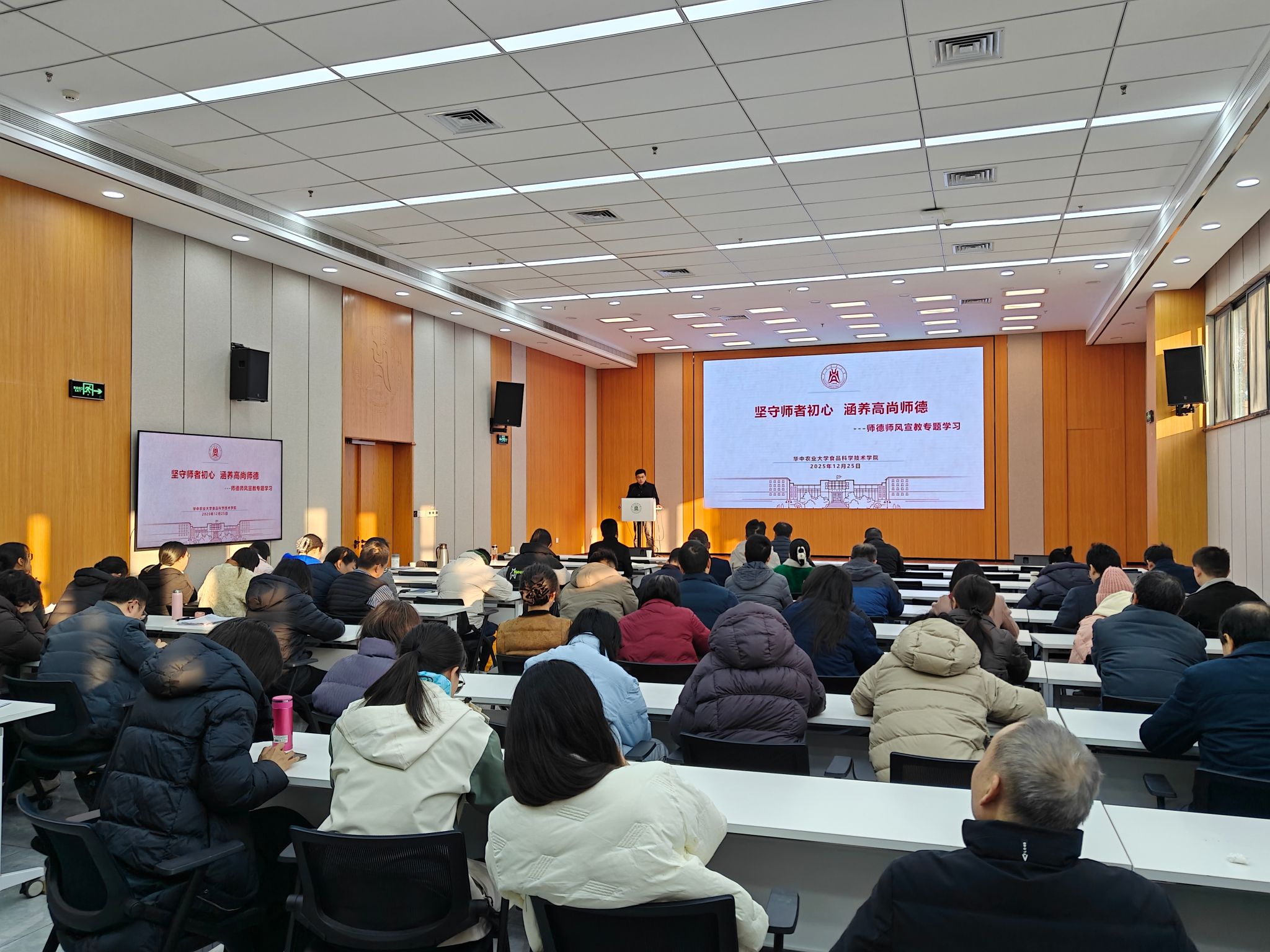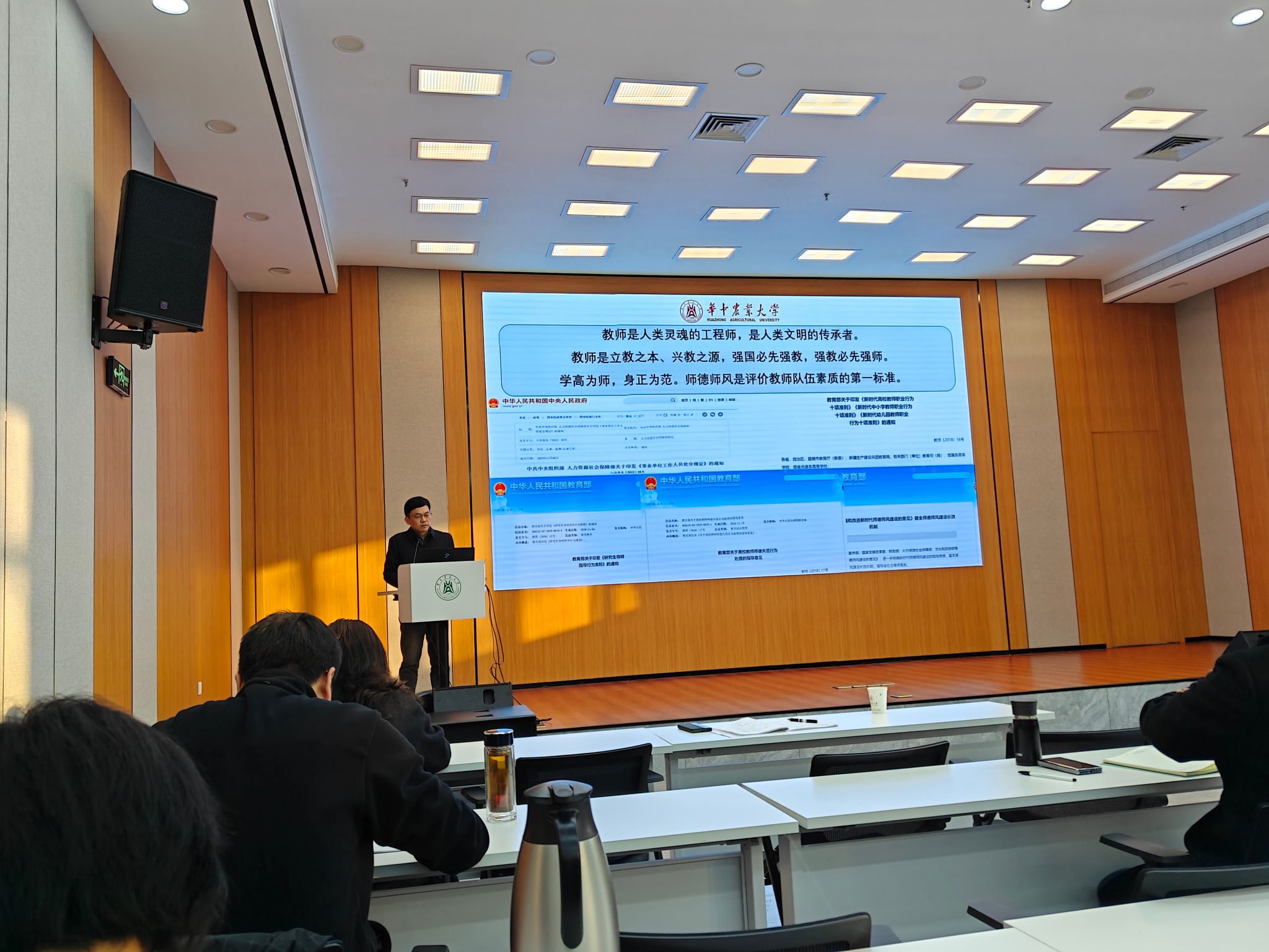 健全师德师风建设长效机制实施办法》等文件内容进行了详细的解读。他表示,教师是人类灵魂的工程师,是人类文明的传承者。教师是立教之本、兴教之源,强国必先强教,强教必先强师。学高为师,身正为范。师德师风是评价教师队伍素质的第一标准。
