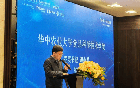 镇志勇代表学院致辞,向与会校友及赞助企业致以感谢与欢迎,他回顾“食科一家人”的深厚联结,结合“十五五”开局与全国两会精神,指出食品产业培育新质生产力的机遇与使命,提出要共筑情感、创新、成长三大共同体,期待以华食会为纽带,深化校企协同与人才培养,凝聚校友力量共促食品产业高质量发展。