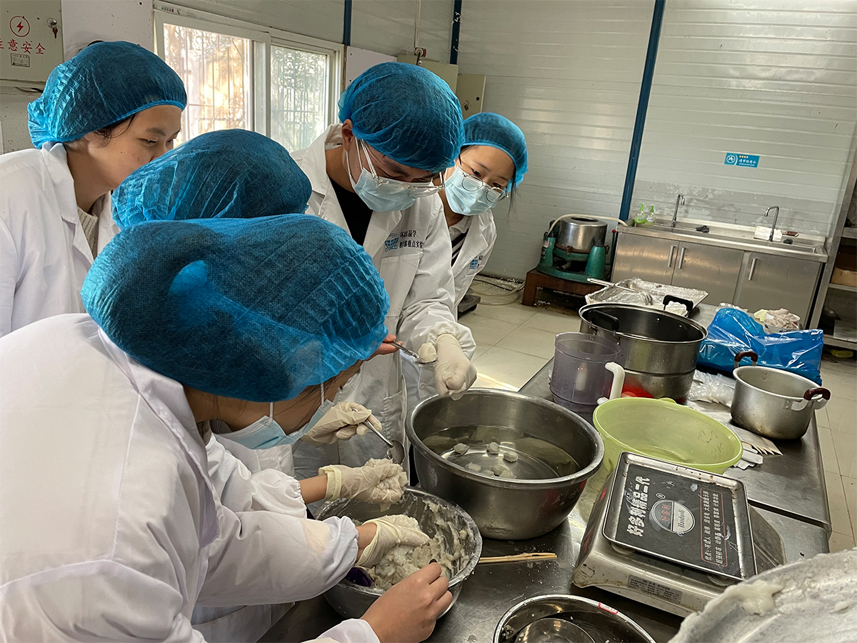 在柑橘楼举办了鱼丸制作活动。食科院优秀毕业生代表、水产学院博士后安玥琦和食科院水产团队的师生们一起探索知识,用科学的魔法将鱼肉变成一颗颗Q弹鲜香的鱼丸,让同学们体会到美食制作的乐趣,也在这个冬天增添了一丝温暖。