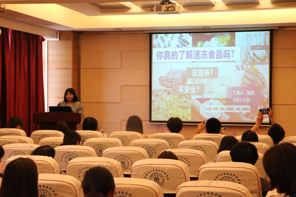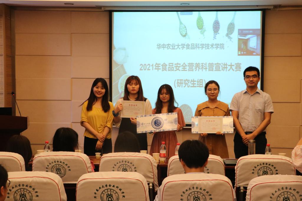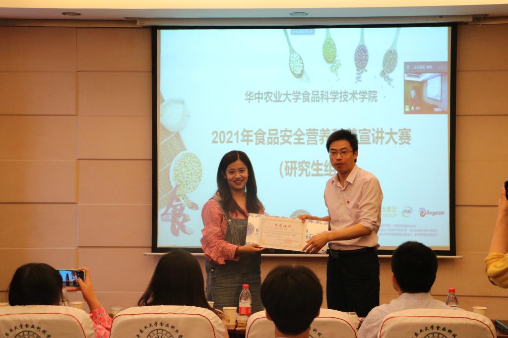 2021年“食品营养与安全”中国行科普宣讲比赛在食科楼504拉开帷幕。本次比赛共有10支队伍,40多名学生参加。食品科技学院党委副书记向异之书记、青年教师代表胡杨老师、鲁群老师、张卓老师,食科院研究生辅导员张静妍老师、前青年志愿者协会负责人张玉荣、现团委副书记周怡出席并担任本次比赛的评委。