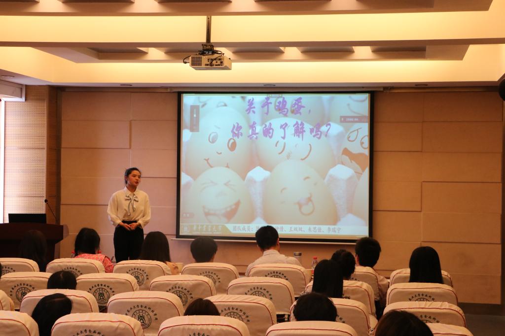 “坏蛋哪里跑”队从蛋壳表面能不能清洗的问题入手,以现场小实验的形式,向大家科普了好蛋变成坏蛋的过程、好蛋与坏蛋的区别以及蛋品日常保鲜的小技巧,“鸡蛋壳有保护层,进冰箱之前一定不能清洗,以免破坏蛋壳的保护层,摆放鸡蛋要大头朝上,要避免鸡蛋与有气味的食物放在一起,防止气体进入蛋内,加速蛋的变质。”“信誓旦蛋”队从鸡蛋的另一个维度给大家科普了鸡蛋的营养价值、土鸡蛋和洋鸡蛋的区别、什么颜色的鸡蛋营养价值更高以及煮鸡蛋的营养价值为什么更高。该团队建议大家把鸡蛋和其他食物合理搭配,营养才会更均衡。