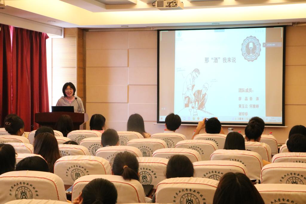 “东方不醉”队向大家介绍了葡萄酒的功效、鉴别方式和自酿葡萄酒的安全问题。针对目前越来越多人开始自己在家酿酒,安全性是否有保障的现象,该团队向大家科普,自酿酒和商品酒相比,所用的的原料不同,商品酒所用的葡萄品种更适合酿酒,自酿酒最大的隐患就是甲醇中毒,因此在酿造的时候,一定要控制好酿造的条件。“食品科学家”队给大家科普了几类很受欢迎的休闲零食:酸奶、薯片和蛋糕。“很多人吃饱了饭,都会选择喝一瓶酸奶帮助消化,这是正确的吗?”面对同学的疑惑,该团队也进行了解答。“其实这是错误的。酸奶是一种饱腹感很强的食物,它添加了蔗糖,热量也很高,是不助于消化的。”该团队对如何挑选蛋糕也提出了“五个不要”,一是不要买含氢化植物油奶油的蛋糕,二是不要买含巧克力的蛋糕,三是不要买色素多的蛋糕,四是不要买含水果的蛋糕,五是不要买含酥皮的蛋糕。