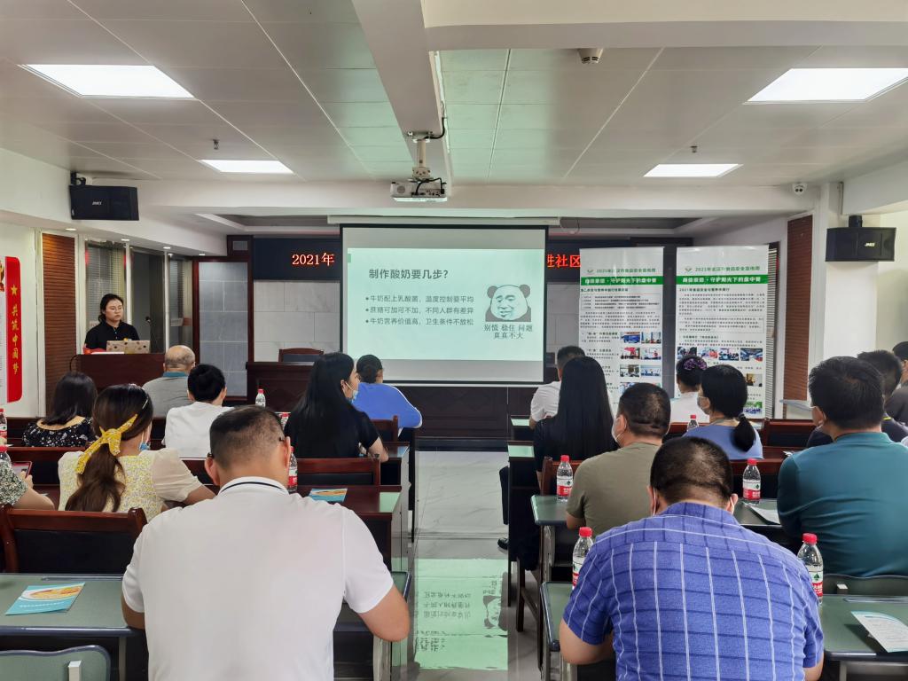 “食品安全与营养中国行”博士团走进东湖高新区荣芳里社区,以休闲零食为主题,酸奶、活菌饮料为示例开展科普讲堂,引导社区居民正确选择休闲食品,推广健康饮食观念。