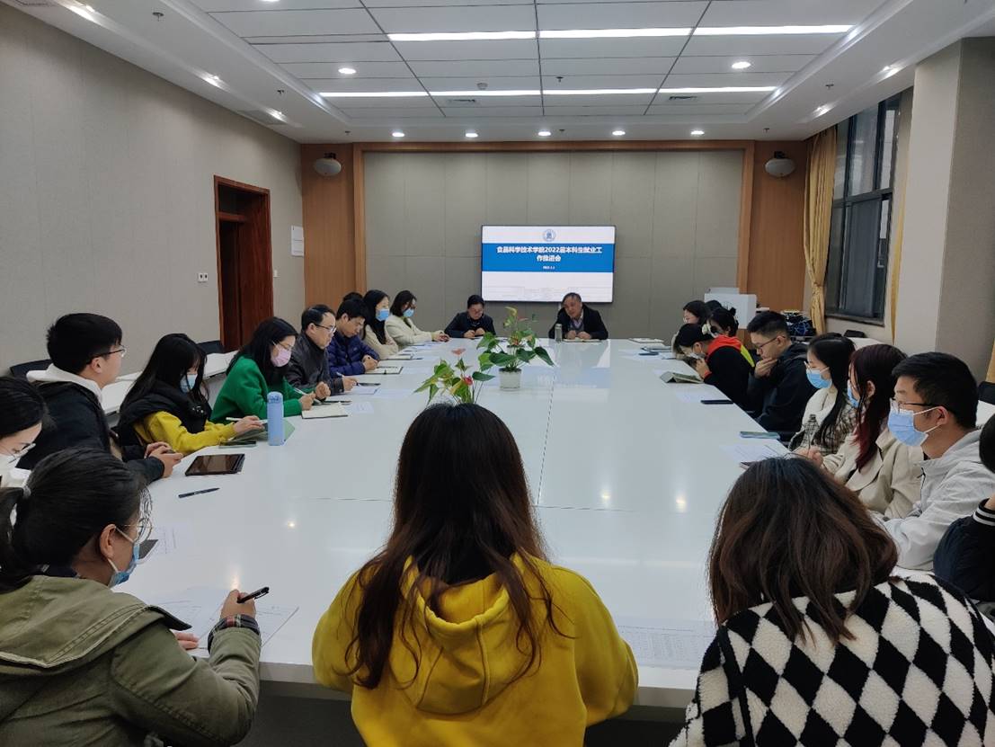 召开2022届本科生就业工作推进会,学院党委书记杨铁贵、党委副书记向异之、食工和食安专业系主任、2022届本科生班主任、本科生教务老师、毕业年级辅导员及2022届本科生就业联络员等参加会议。会议由学院党委副书记向异之主持。
