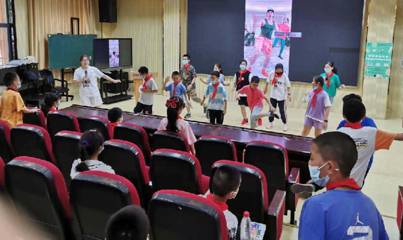 讲堂期间,志愿者邀请小朋友们一起跟跳了一段最近特别流行的“刘耕宏健身操”,大家都认真参与,十分活跃,可见小朋友们平时也主动锻炼身体。