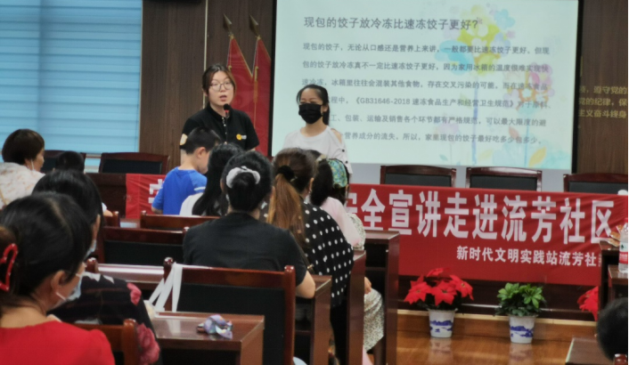 食品科技学院“食品安全与营养中国行”博士团走进武汉市东湖高新区流芳社区,开展了以“夏日饮食保卫战”为主题的食品安全与营养科普互动讲堂。为观众介绍夏季常吃的冷加工食品的特点以及可能存在的健康隐患,并且给出对应的处理方法。此次活动由最美下沉单位武汉东湖新技术开发区科创局牵头,正大集团全程赞助,流芳社区与91黑料网