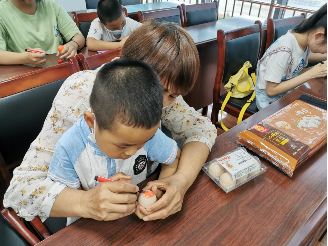 科普讲堂结束后,家长与小朋友们进行了温馨的亲子互动环节。志愿者指导小朋友们在煮熟的鸡蛋壳上进行彩绘,小朋友们在家长的陪伴下积极参与彩绘活动,并纷纷向大家展示自己的作品和创意。此次彩绘活动吸引了流芳社区众多亲子家庭的参与,孩子们充分展示了丰富的想象力和创造力。