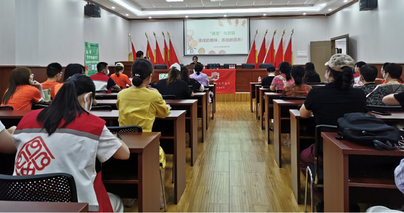 食品科技学院“食品安全与营养中国行”博士团走进武汉市东湖高新区关山社区,开展了以““速冻”与激情——速成的美味,冻住的营养”为主题的食品安全与营养科普互动讲堂。为居民讲解速冻食品的营养与危害、保藏与食用,并进行了互动答疑。此次活动由博士团志愿者廖晶主讲,正大集团全程赞助,关东街社区居民共同参与活动。