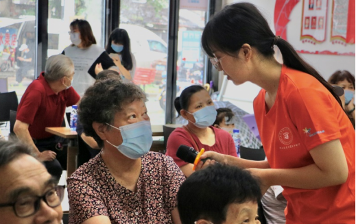(图2 志愿者李琪琪为居民进行开场介绍)