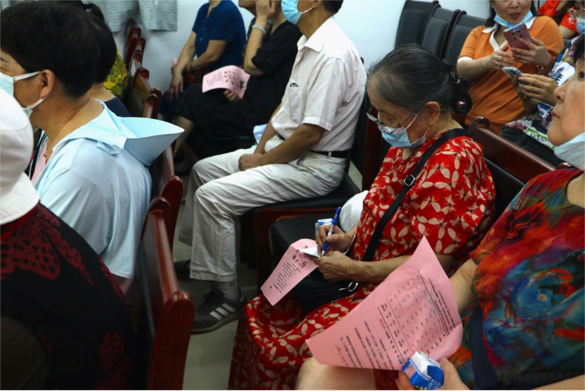 (图2 志愿者张馨元为居民进行科普宣讲)