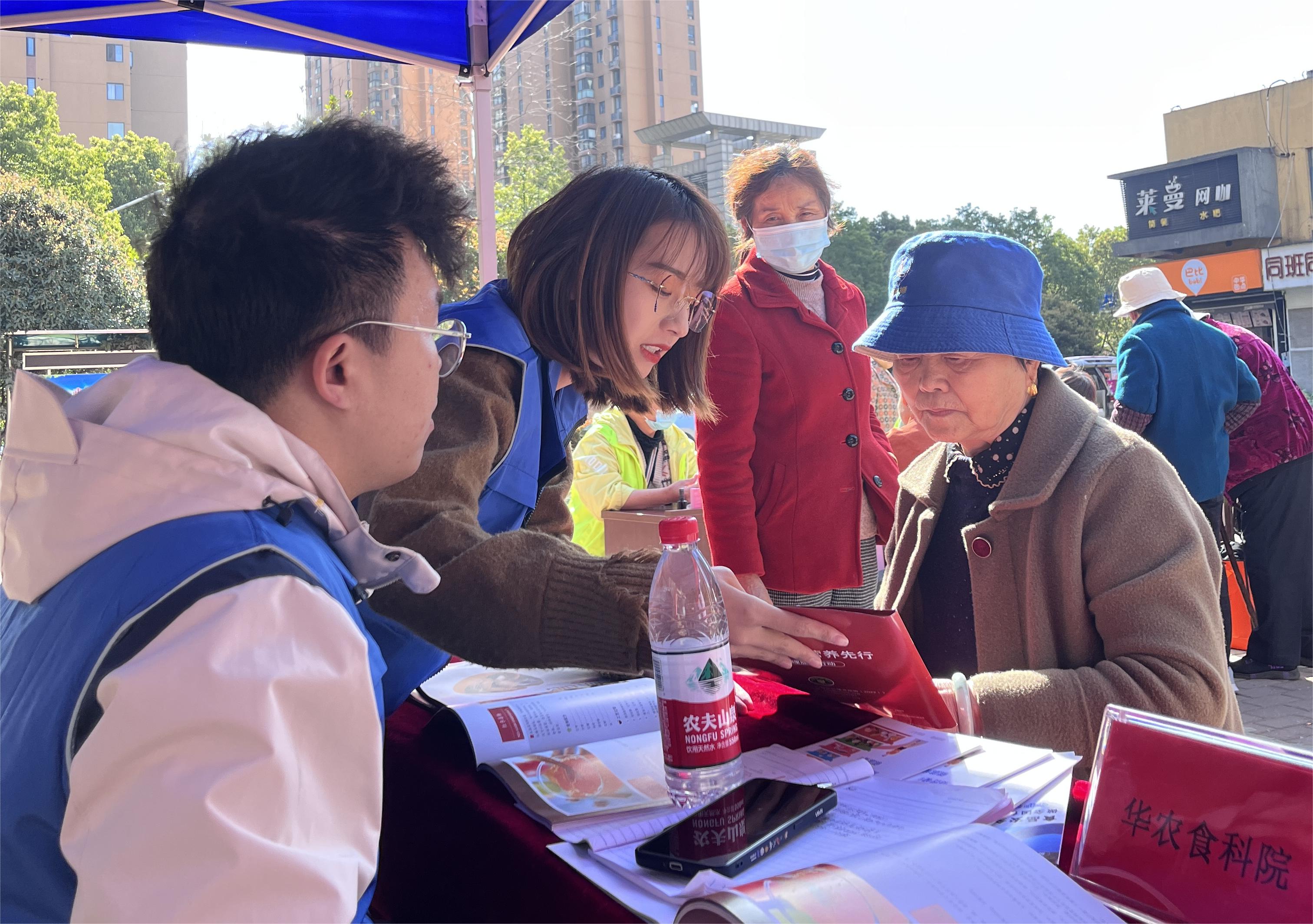 “阿姨,您的血糖比较高,所以日常在主食的选择上要尽量选择低GI值的食物”。“膳食营养宝塔给了我们平衡的膳食建议,您的早餐吃的热干面,那一会儿中餐记得要多吃一些深色蔬菜,增加膳食纤维和维生素的摄入哦!”通过趣味答题、知识讲授以及食谱搭配等方式,博士团志愿者引导居民学习了解了2022膳食营养宝塔、日常食品谣言、人体七大营养素、特殊食品及营养素、食品快速检测等食品安全和营养的日常知识,旨在加强公众食品安全和健康意识,维护居民作为消费者的合法权益。