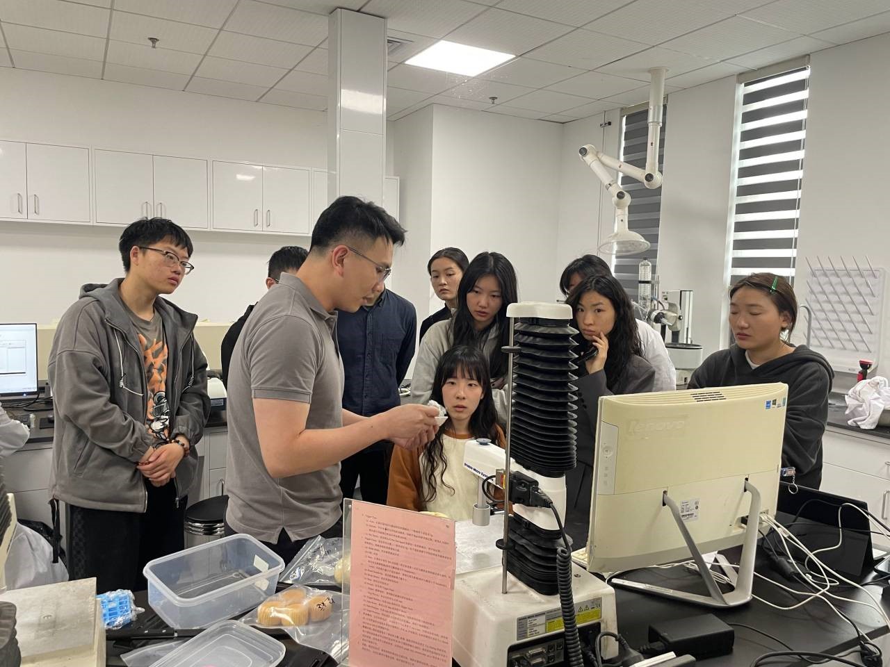 贾勇亮工程师对质构仪的硬件组成和软件做了详细介绍,并对实验过程中设定的各个参数做了逐一说明,为同学们解读了软件应用指南,对测试中模式和探头的选择做了详细介绍,同时对数据导出和测试结果分析也做详细介绍。