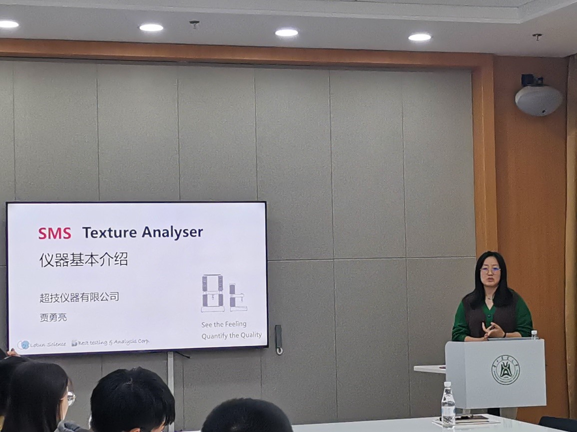 于工科楼122会议室开展了质构仪高级培训课,院内院外师生共有30余人参加。培训课由食品科技学院公共平台任婧楠老师主持。