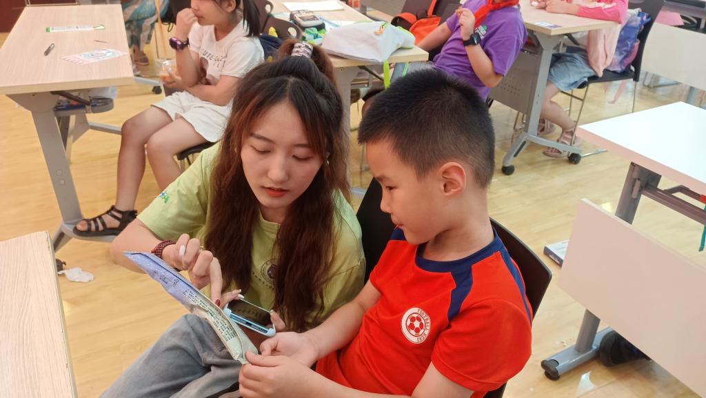 奥秘揭晓后,小朋友们在志愿者老师带领下现学现用,在台上当起了小老师:小朋友们拿到各式各样的食品包装后,首先检查了保质期与生产日期,确认食品没有过期。接着检查了生产厂家、许可证编号等,确认食品是合规的。最后,小朋友还仔细阅读了配料表和营养成分表。有位小朋友就此补充总结道:“虽然这个食品可以使用,但是大家一定要少吃,因为糖的含量太高了。”