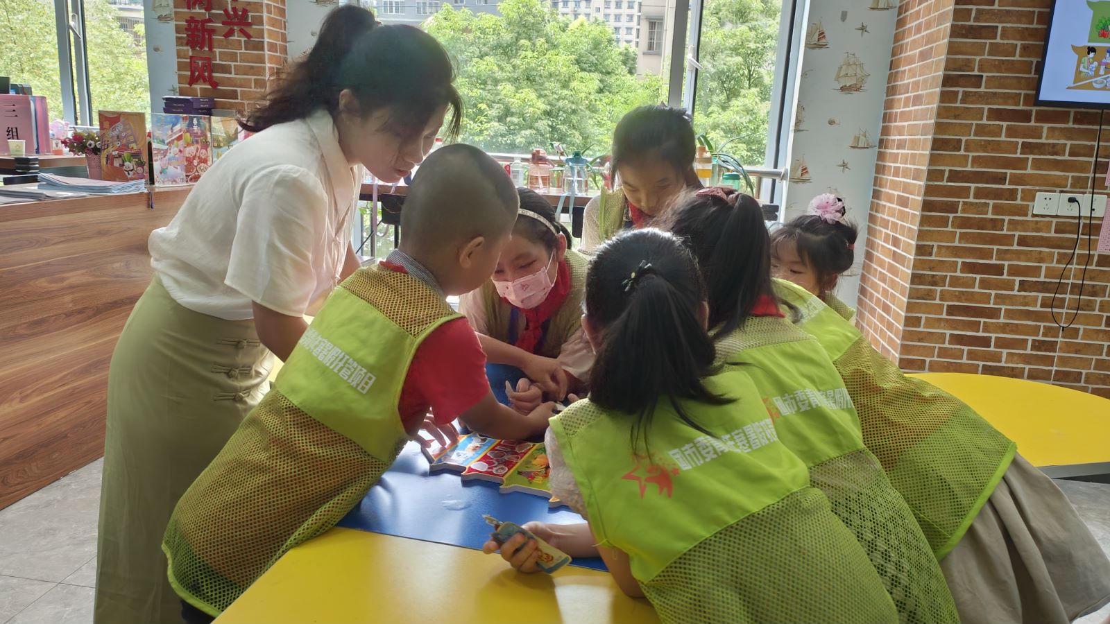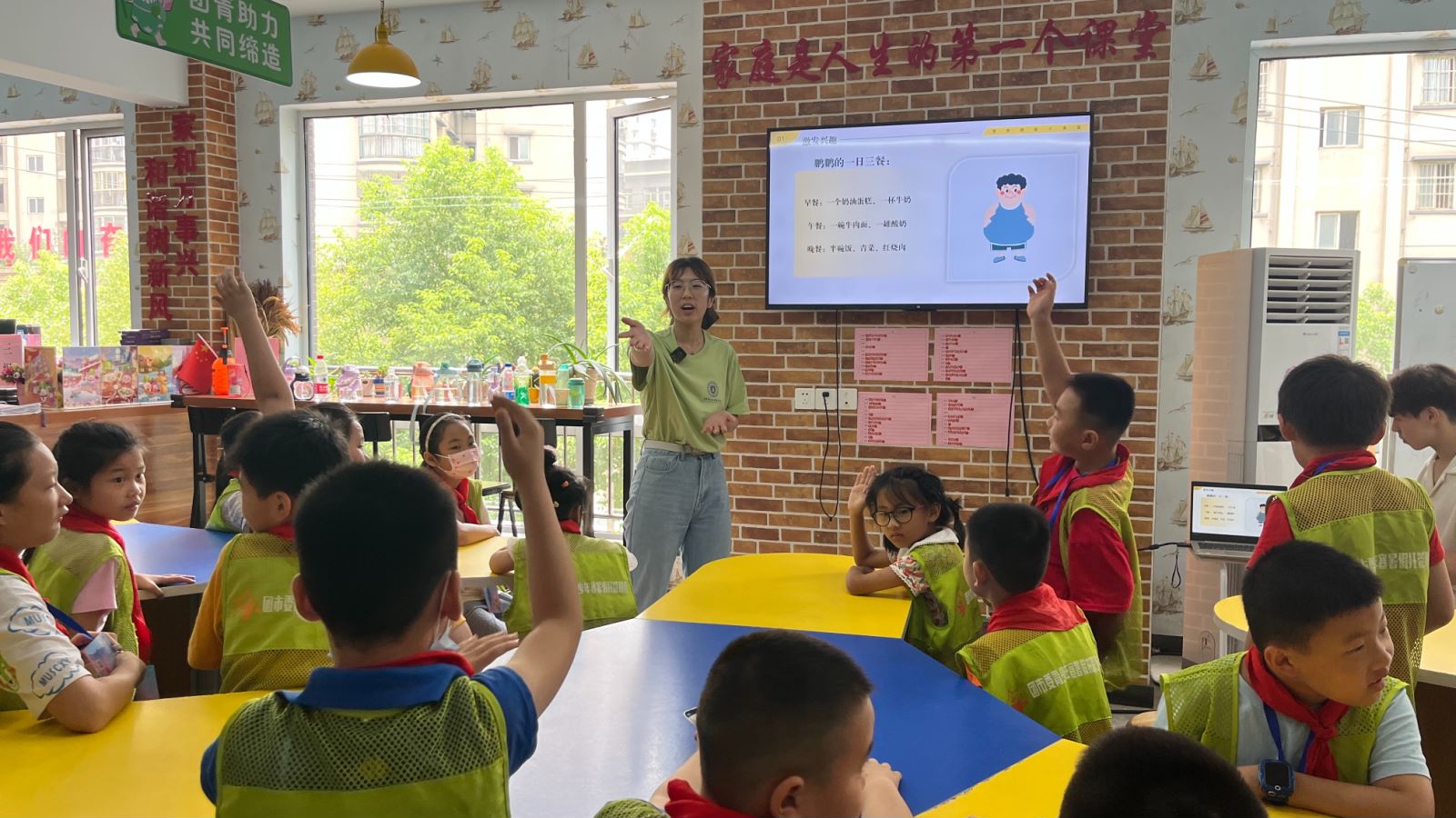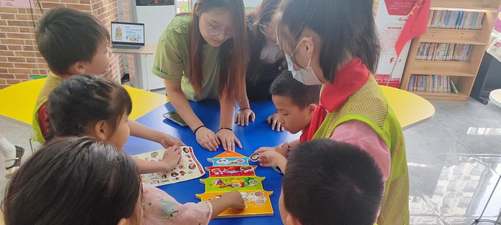 同学们在志愿者引导下进行小组活动