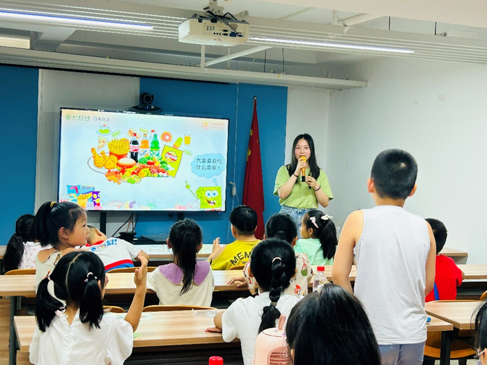 “我们一天中什么时候吃零食比较合适?”“按照加工方式零食分为哪三种?”课程最后同学们踊跃参与闯关答题,并和老师分享本次课的心得体会。
