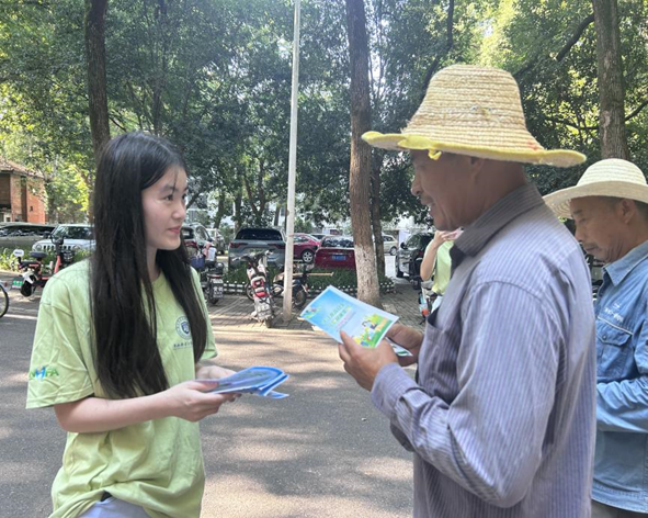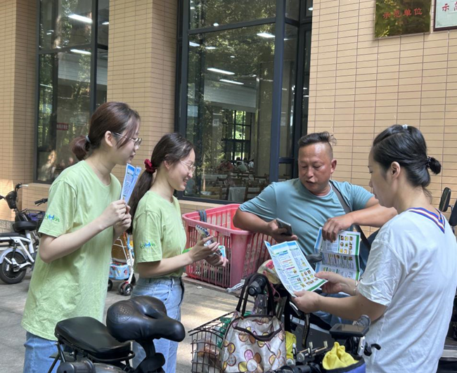 志愿者单雨萌和石雨欣,通过发放食品安全宣传手册和调查问卷,向社区居民开展营养健康食品科学知识普及,介绍了“酸汤子事件”、“亚硝酸盐中毒”等食品安全事件,进一步提高居民对食品安全问题的重视,引导消费者科学认知、理性消费。