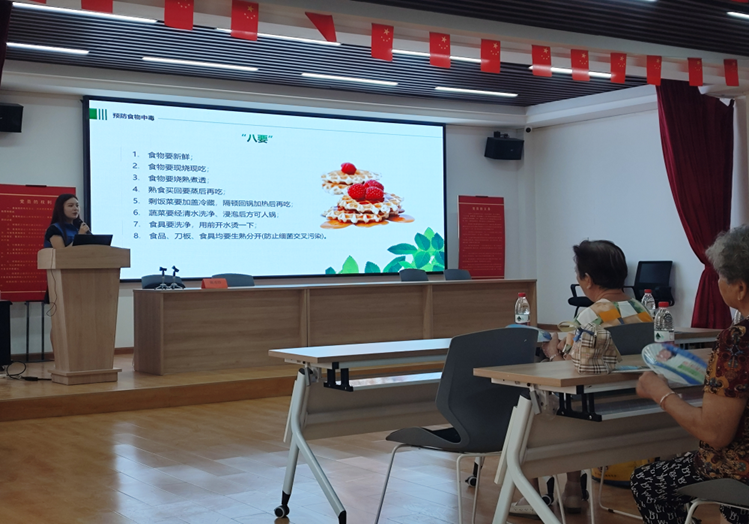 “大家都知道生活中食物中毒的现象有很多,发芽的土豆,未煮熟的四季豆等等都会让我们产生肠胃的问题,但大家知道如何来预防食物中毒吗?”胡雪芹讲道。台下部分观众表示:“老年人平时生活比较节俭,存在一些把发芽土豆继续使用,腐烂果蔬挖去腐烂部位继续使用的现象,平时都不在注意食物中毒的预防。”对此,胡雪芹讲解道:“食物中毒主要有发病急、无传染性和季节性的特点。主要分为细菌性食物中毒和有毒动植物的中毒两类,我们想在生活中起来预防作用,就要做到‘八要’和‘八不要’。”