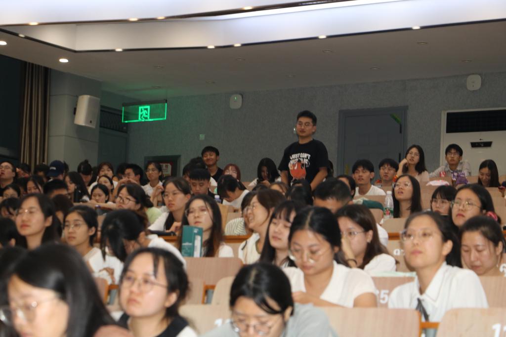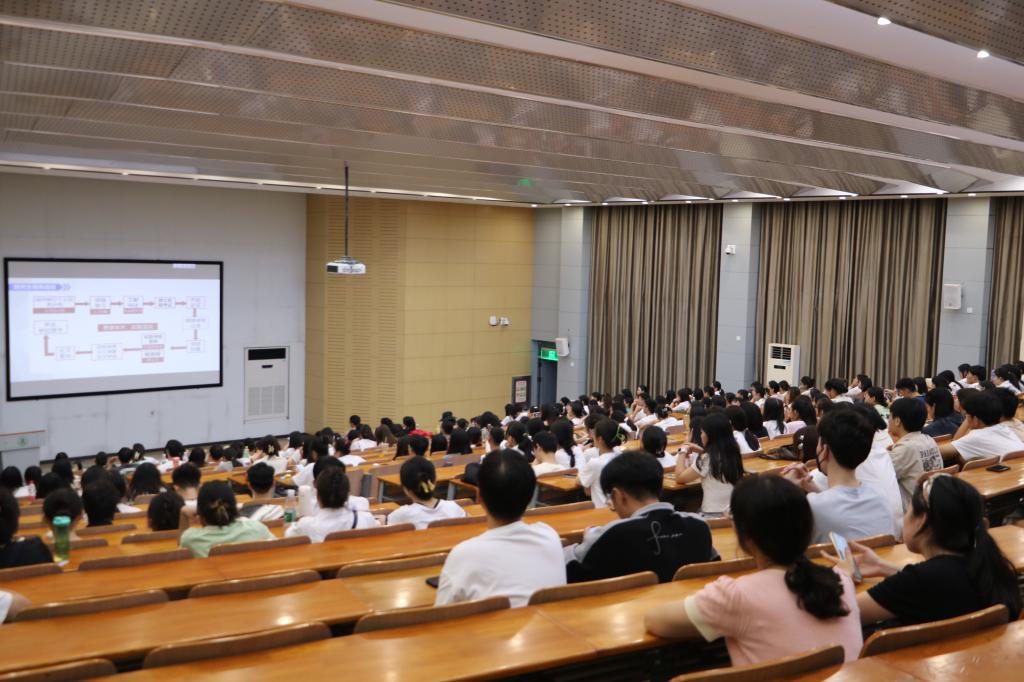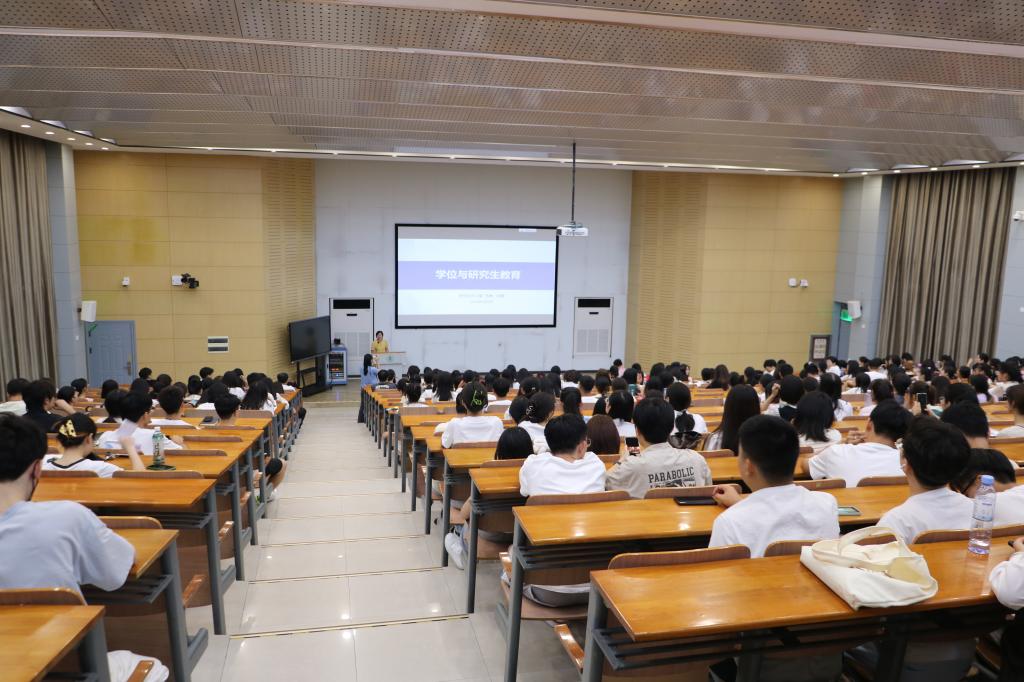 于三教S2开展2023级新生学位与研究生教育会议,研究生办公室苏铮、徐薇以及全体2023级研究生参加此次会议。
