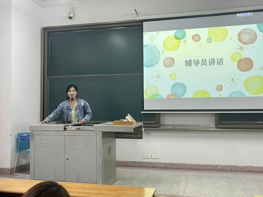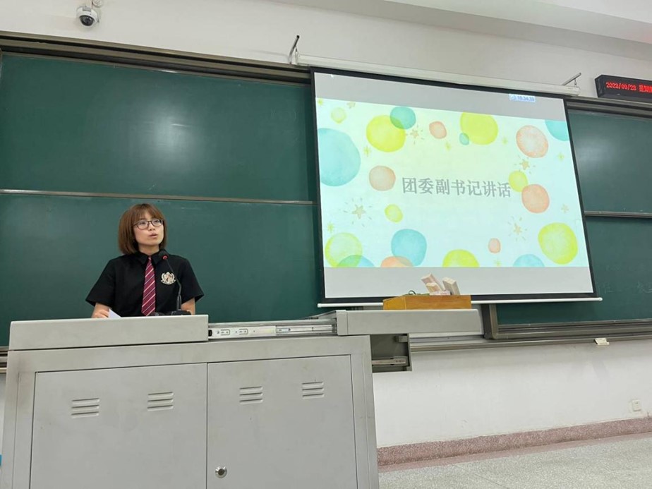 随后,学生团委副书记周昀涵上台发言。她强调,“理”即理论知识,“研”即研讨学习,这代表着各位同学要明确加入理研会的目标。她对在场的同学们提出建议,希望同学们能在研讨期间加强理论学习、提高思想境界,并关注政治时事,碰撞出思想交流的火花。同时她也结合自身经历与专业学习,为大家分享了经验方法,并强调同学们应在实践中学以致用,在实践中继续学习。