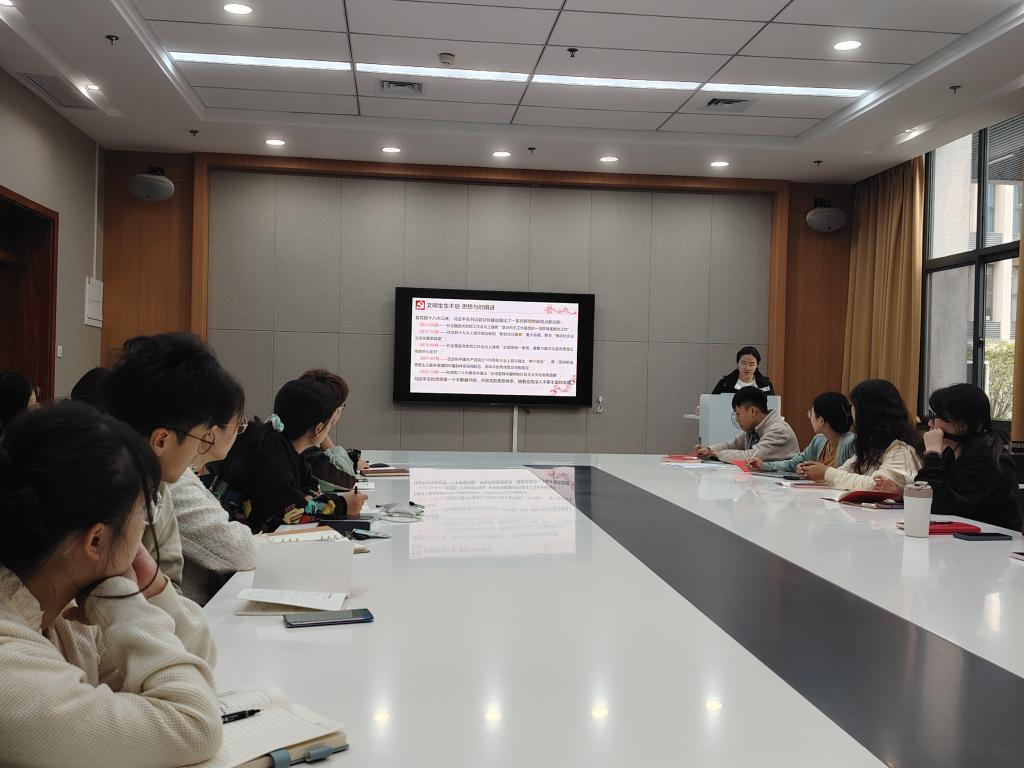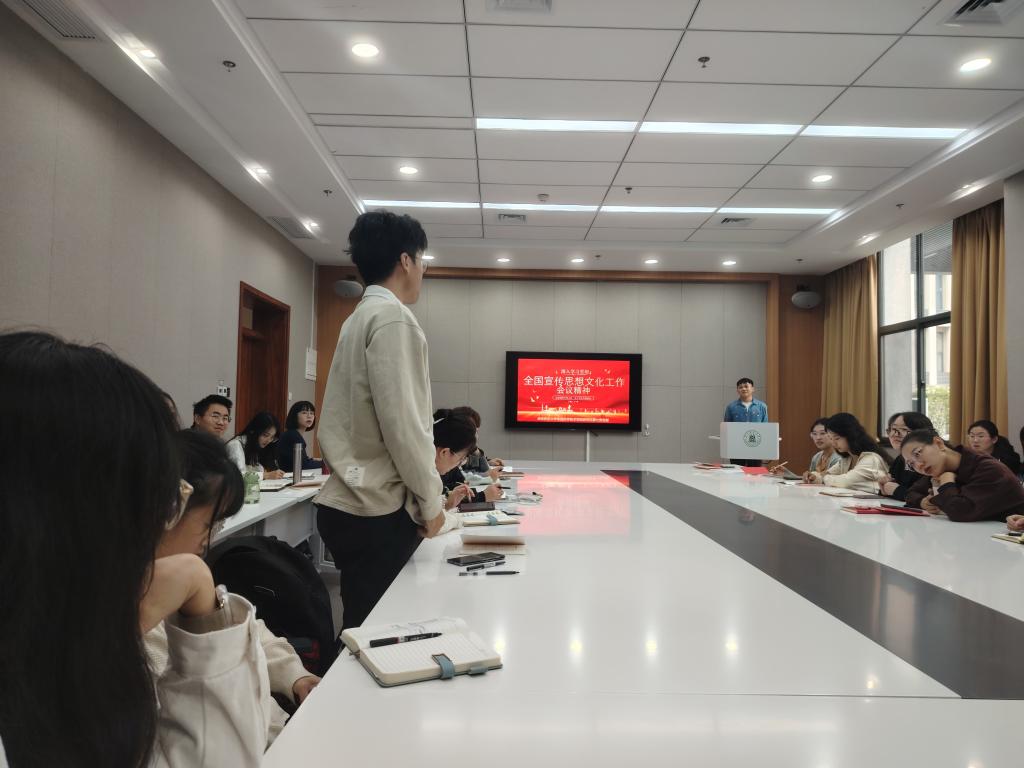 文明生生不息,思想与时俱进。张婷同志结合党的十八大以来系列讲话和党的十九大以来六大思想,就深入学习贯彻习近平总书记重要指示和全国宣传思想文化工作会议精神具体如何实施展开深入分析:以语言为载体的青年,是宣传思想文化工作的一环,肩负着爱党、护国、弘扬民族精神的初心使命。唯有对党、对国家、对民族保有最深切真挚的情感,笔下的文字才能焕发出最蓬勃的生机与力量。而这生机与力量,也必将助力国家繁荣富强、民族伟大复兴。