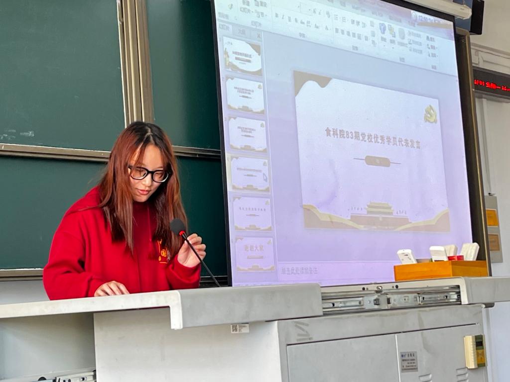 第83期党校优秀学员张雨欣分享了她在党校学习的心路历程与收获。她表示,在党校的学习进一步加深了她对党的认识,更加端正入党动机,更加明确了党员的责任和义务。她与党校学员共勉,希望党校学员在党校中做到研深、悟透、落实,不断向党组织靠拢。