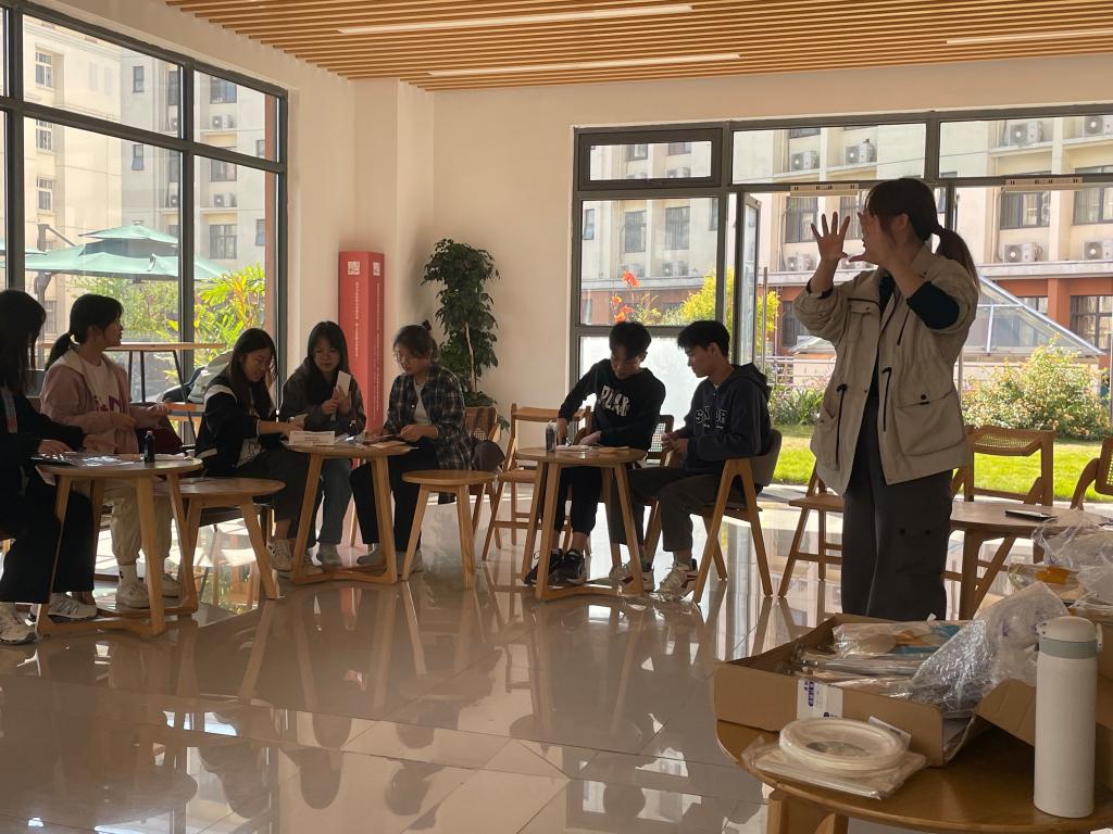活动伊始,团支书罗蓉向大家细致介绍了此次活动的背景以及蓝晒作品的制作方法。她详细阐述了蓝晒这一古老的染色技艺,让同学们对这种非物质文化遗产有了更深入的了解。随后,同学们便纷纷分组,投入到创作中去。