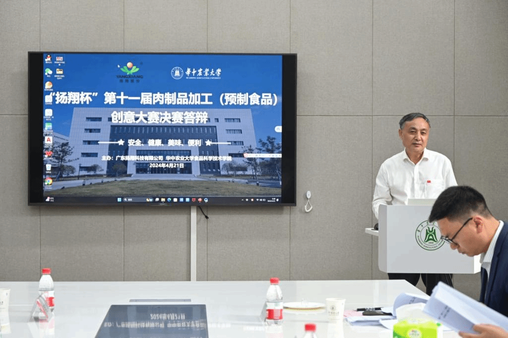“扬翔杯”第十一届肉制品加工创意大赛决赛在新工科楼122会议室举行。广西扬翔股份有限公司万得厨运营中心食品研发技术部总监董会龙,影子科技-华中农大健康食品产业研究院研究员、食品味道研究所所长谢定源,91黑料网