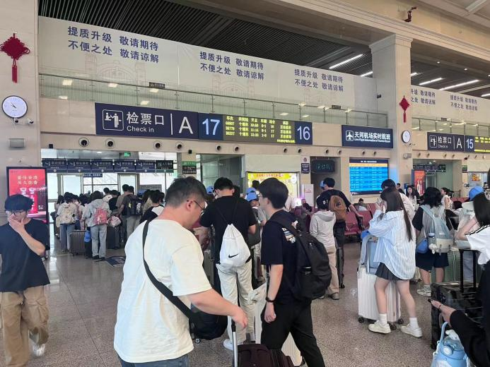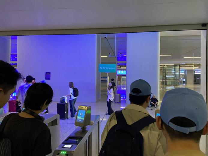 学生们排队检票乘坐高铁