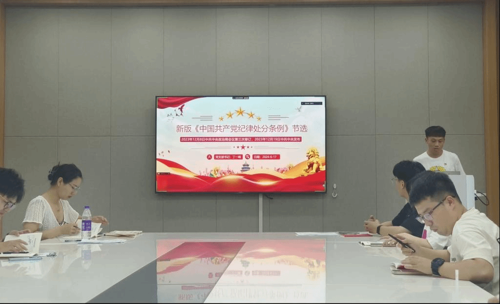 本次会议以“党纪学习”为主题,旨在通过集中学习和讨论,提升党员们的纪律意识和政治素养。会议伊始,支部书记丁一峰同志带领全体党员共同学习了《中国共产党纪律处分条例》中第二编分则第九章、第十章、第十一章和第三编附则部分的内容,对党的纪律规定进行了深入解读,强调了党员遵守党纪的重要性。支部成员就党纪学习教育展开充分的交流,各党小组成员积极进行学习心得分享。