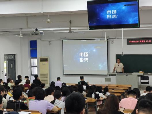 党委副书记吕瑞凯为全体同学分析了目前的就业形势。一是,就业竞争激烈,需求供给不匹配。二是主要行业需求低温运行,企业校招需求收紧。三是,内卷成为常态,综合素质要求更高。吕瑞凯表示,要利用好“金九银十”“金三银四”的时间节点,提前准备、提前谋划,打磨简历、锻炼能力,把握好求职的黄金期,实现个人高质量就业。吕瑞凯还就毕业生求职准备不足、求职主动性不够、对中小企业的认知不够等问题进一步说明,他表示全体同学要清醒认识到个人在就业方面存在的困难和问题,要知难而进而不是畏难而退,树立“先就业,再择业”的观念,实事求是地在工作岗位上实现锻炼与成长,更加清楚地规划好个人事业发展的蓝图。最后,他就2024届毕业生就业去向为同学们进行了分析,集中讲解了2024届毕业生同学的就业岗位与就业单位,以及升学所去学校、专业的有关情况。他鼓励同学们考研、就业既要志存高远,也要脚踏实地,确定合适的升学目标和就业目标,找寻适合自身的发展道路。