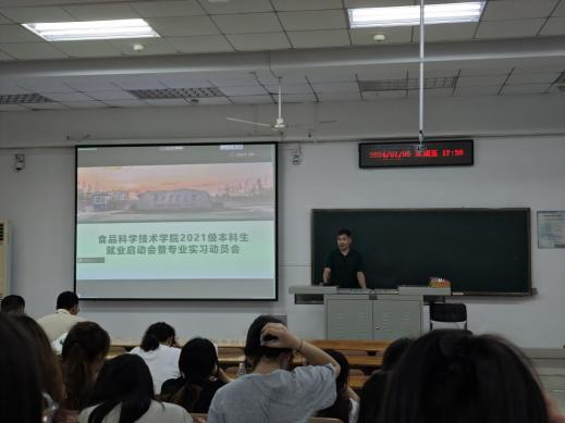 召开2025届本科生就业启动会暨专业实习动员。食科院21级全体本科生参加会议,学院党委副书记吕瑞凯、副院长刘友明参加会议。会议由辅导员李虎主持。