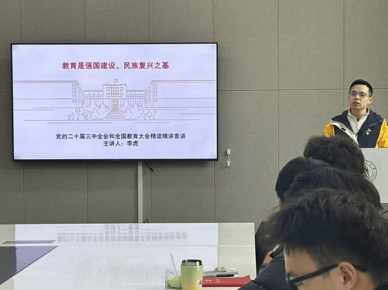 辅导员、本科生第三党支部书记李虎面向支部全体党员开展宣讲。