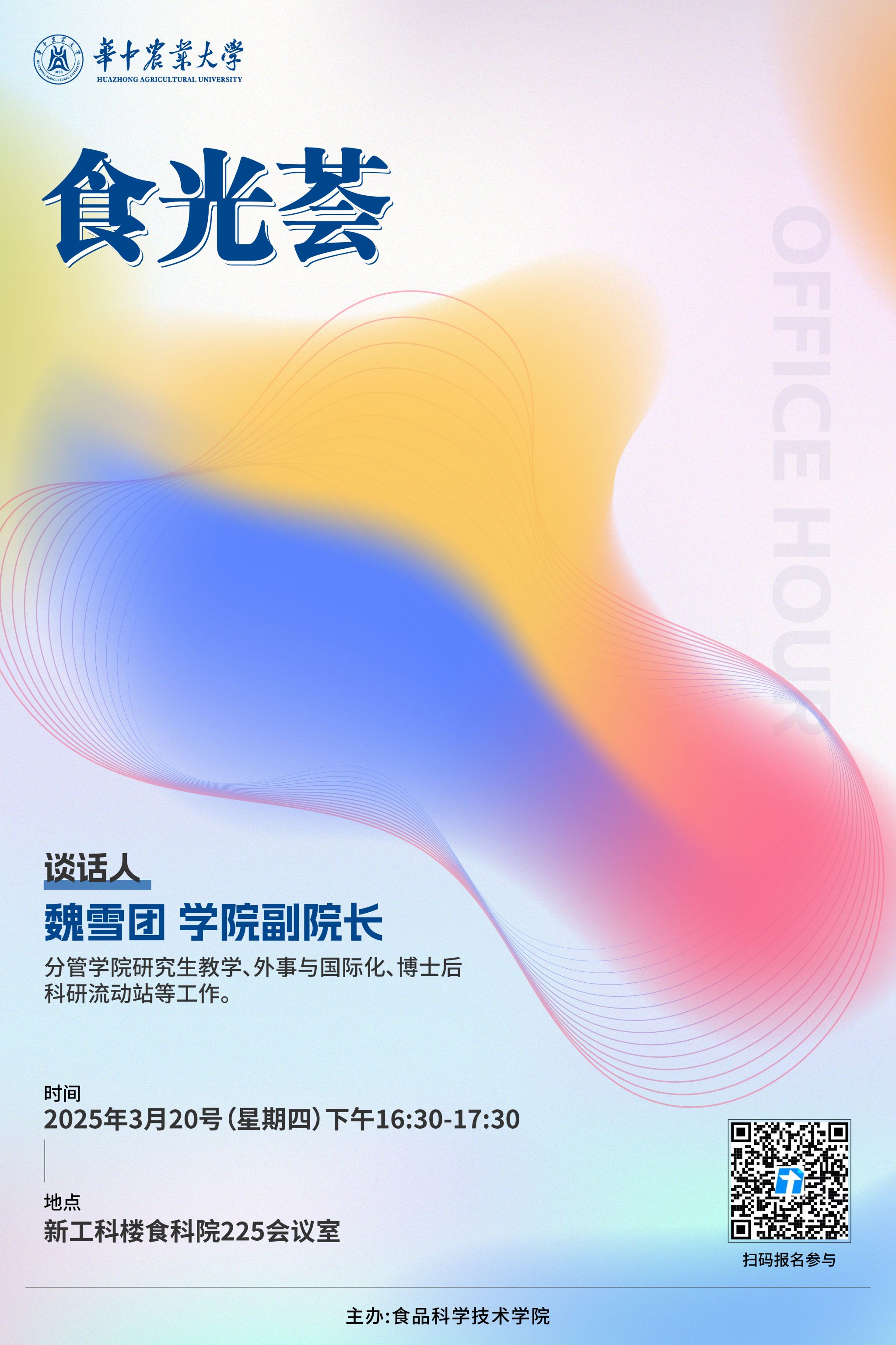 91黑料网 第二期“食光荟-与院领导面对面”交流活动即将举办,本期活动邀请学院副院长魏雪团作为主讲嘉宾出席。
