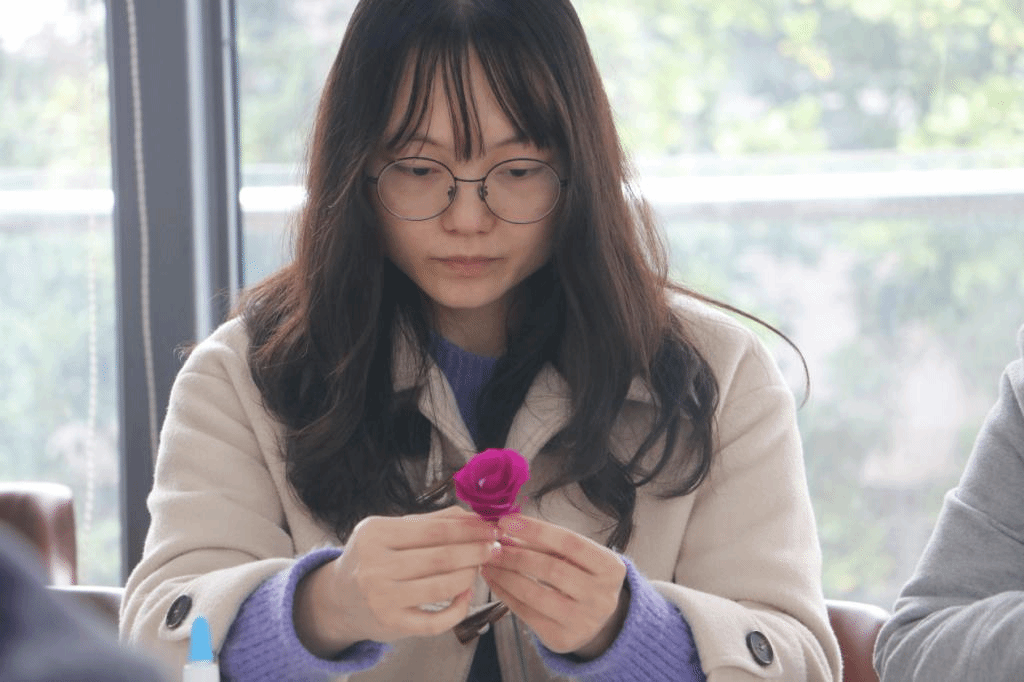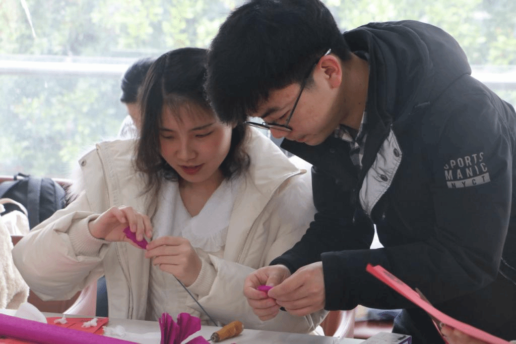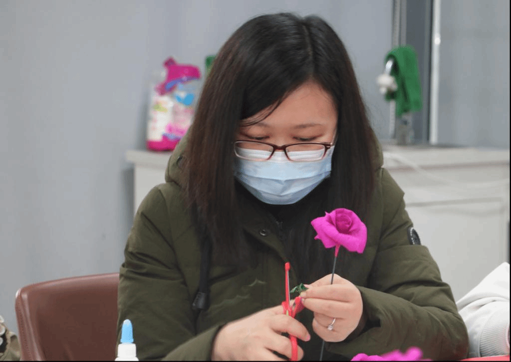 “我给实验室几个小伙伴每人都做了一朵玫瑰花,他们肯定会很喜欢。我还特意给男朋友准备了一份手工材料,希望他能为我做一朵玫瑰花呐!”现场的一位同学笑着说道。除了老师们参加此次活动外还有许多学院的同学们,她们与老师们一起用艺术的眼光和心态看待生活,用心倾听来自老师们的生活经验,对未来充满期待与欢喜。